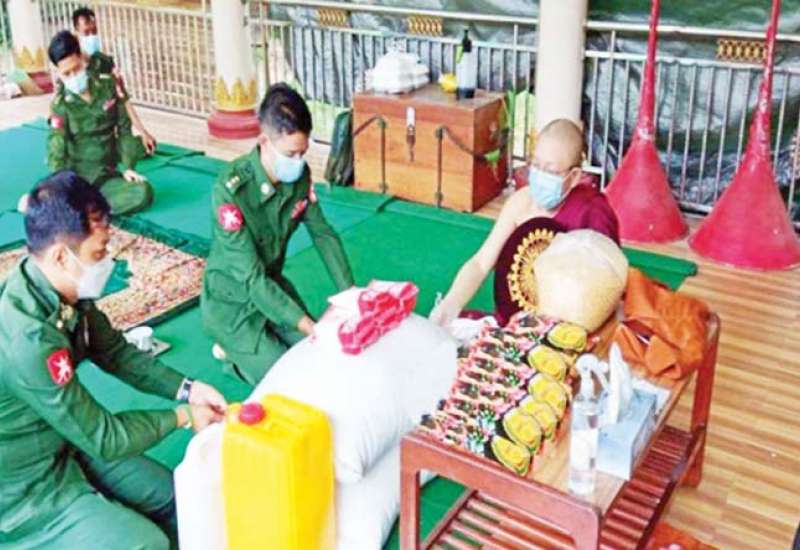 ကိုဗစ်-၁၉ ရောဂါ ကြိုတင်ကာကွယ်ရေးလုပ်ငန်းများ ဆောင်ရွက်နေသည့်ကာလ အတွင်း ဆွမ်းကိစ္စရပ်များ အဆင်ပြေစေရန်ရည်ရွယ်၍ တပ်မတော်(ကြည်း၊ရေ၊ လေ) အရာရှိ၊ စစ်သည်၊ အရာထမ်း၊ အမှုထမ်းများနှင့် စေတနာရှင်အလှူရှင်များက မြို့နယ် အသီးသီးရှိ ဘုန်းတော်ကြီး ကျောင်းများ၊ သာသနာနွယ်ဝင် သီလရှင်ကျောင်းများနှင့် ဘာသာရေးကျောင်းများသို့ ဆွမ်းဆန်တော်၊ ဆီ၊ ဆား၊ ပဲ အမယ်(၄)မျိုးနှင့် လှူဖွယ် ပစ္စည်းများလှူဒါန်းခြင်း၊ နေ့ဆွမ်းများ ဆက်ကပ်လှူဒါန်းခြင်းနှင့် ကျန်းမာရေး စစ်ဆေး ပေးခြင်းများကို ဆောင်ရွက်လျက် ရှိသည်။