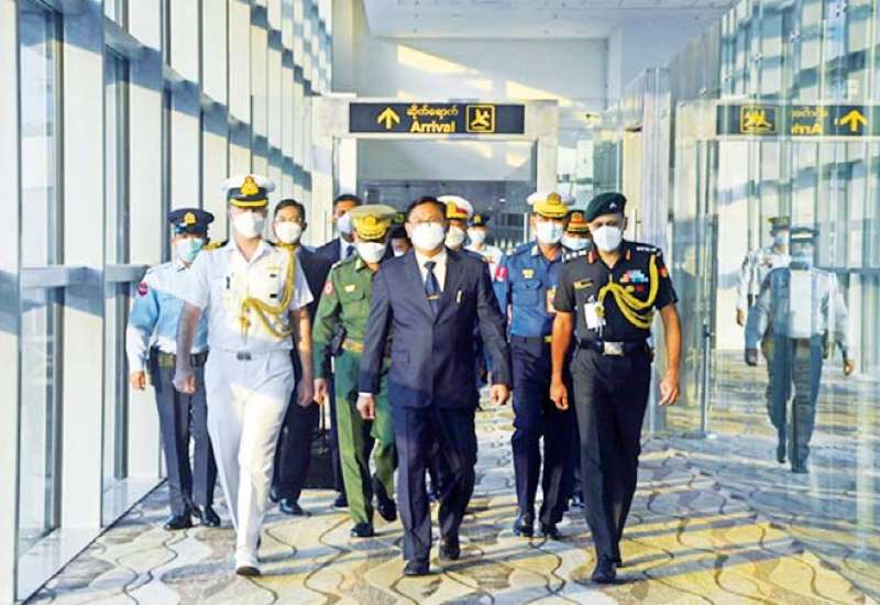 အိန္ဒိယနိုင်ငံသို့ နိုဝင်ဘာ ၆ ရက်မှ ၁၃ ရက်နေ့အထိ ချစ်ကြည်ရေးခရီးသွား ရောက်ခဲ့သည့် ကာကွယ်ရေးဦးစီးချုပ်(ရေ) ဗိုလ်ချုပ်ကြီး မိုးအောင် ဦးဆောင်သော ကိုယ်စားလှယ်အဖွဲ့သည် ယနေ့ညနေပိုင်းတွင် ရန်ကုန်မြို့သို့ လေကြောင်းခရီးဖြင့် ပြန်လည်ရောက်ရှိလာရာ ရန်ကုန်တိုင်းစစ်ဌာနချုပ် တိုင်းမှူး ဗိုလ်ချုပ် ညွန့်ဝင်းဆွေ၊ နယ်မြေခံရေတပ်ကွပ်ကဲမှုဌာနချုပ် ဌာနချုပ်မှူး ဗိုလ်ချုပ် ထိန်ဝင်း၊ မြန်မာနိုင်ငံဆိုင်ရာ အိန္ဒိယစစ်သံမှူးနှင့် တပ်မတော်အရာရှိကြီးများက ရန်ကုန်အပြည်ပြည်ဆိုင်ရာ လေဆိပ်၌ ကြိုဆိုနှုတ်ဆက်ကြသည်။