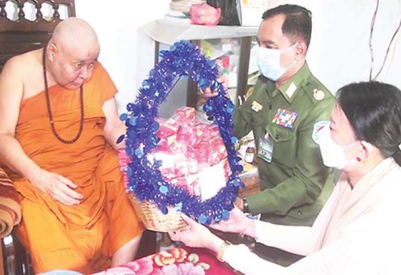 ကိုဗစ်-၁၉ ရောဂါ ကြိုတင်ကာကွယ်ရေးလုပ်ငန်းများ ဆောင်ရွက်နေသည့်ကာလ အတွင်း ဆွမ်းကိစ္စရပ်များ အဆင်ပြေစေရန်ရည်ရွယ်၍ တပ်မတော်(ကြည်း၊ရေ၊ လေ) အရာရှိ၊ စစ်သည်၊ အရာထမ်း၊ အမှုထမ်းများနှင့် စေတနာရှင်အလှူရှင်များက မြို့နယ်အသီးသီးရှိ ဘုန်းတော်ကြီး ကျောင်းများ၊ သာသနာနွယ်ဝင် သီလရှင်ကျောင်းများနှင့် ဘာသာရေးကျောင်းများသို့ ဆွမ်းဆန်တော်၊ ဆီ၊ ဆား၊ ပဲ အမယ်(၄)မျိုးနှင့် လှူဖွယ် ပစ္စည်းများလှူဒါန်းခြင်း၊ နေ့ဆွမ်းများ ဆက်ကပ်လှူဒါန်းခြင်းနှင့် ကျန်းမာရေး စစ်ဆေး ပေးခြင်းများကို ဆောင်ရွက်လျက်ရှိသည်။