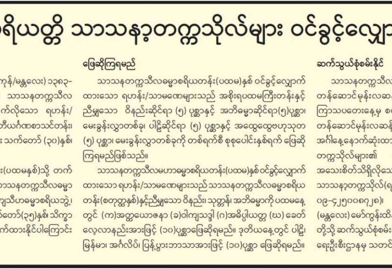 နယ်စပ်ရေးရာဝန်ကြီးဌာန ပညာရေးနှင့်လေ့ကျင့်ရေးဦးစီးဌာန၊ ဗဟိုလေ့ကျင့်ရေးကျောင်းတွင် စီမံခန့်ခွဲရေးသင်တန်းအမှတ်စဉ် (၇၅)၊ အဆင့်မြင့်စက်ချုပ်နည်းပြသင်တန်း အမှတ်စဉ်(၃၉)၊ စာရေးဝန်ထမ်းသင်တန်းအမှတ်စဉ် (၁ဝ၉) သင်တန်းများဖွင့်ပွဲ အခမ်းအနားကို ယမန်နေ့ နံနက် ၈ နာရီတွင် သင်တန်းကျောင်းခန်းမ၌ ကျင်းပသည်။