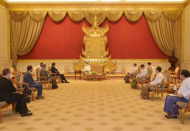 နိုင်ငံတော်စီမံအုပ်ချုပ်ရေးကောင်စီဥက္ကဋ္ဌ နိုင်ငံတော်ဝန်ကြီးချုပ် ဗိုလ်ချုပ်မှူးကြီး မင်းအောင်လှိုင်သည် အမေရိကန်နိုင်ငံ၊ နယူးမက္ကဆီကိုပြည်နယ် အုပ်ချုပ်ရေးမှူးဟောင်း မစ္စတာဘီလ်ရစ်ချတ်ဆန်အား ယနေ့နံနက်ပိုင်းတွင် နေပြည်တော်ရှိ နိုင်ငံတော်စီမံအုပ်ချုပ်ရေးကောင်စီရုံး၊ သံတမန်ဆောင်ဧည့်ခန်းမ၌ လက်ခံတွေ့ဆုံသည်။
