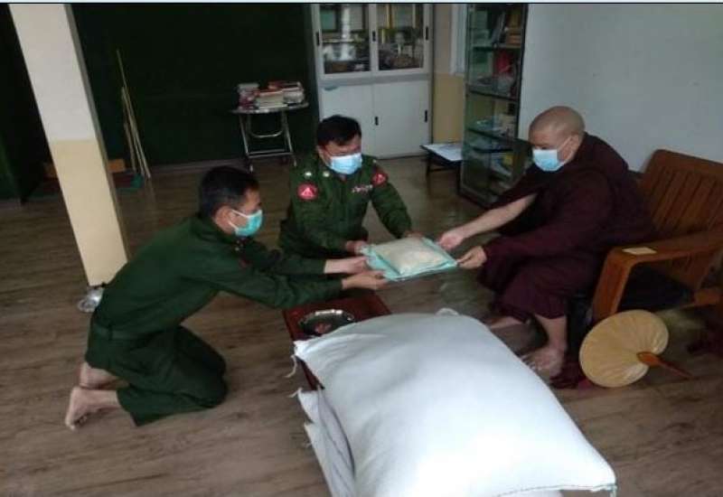 ကိုဗစ်-၁၉ ရောဂါ ကြိုတင်ကာကွယ်ရေးလုပ်ငန်းများ ဆောင်ရွက်နေသည့်ကာလအတွင်း ဆွမ်းကိစ္စရပ်များ အဆင်ပြေစေရန်ရည်ရွယ်၍ တပ်မတော် (ကြည်း၊ ရေ၊ လေ) အရာရှိ၊ စစ်သည်၊ အရာထမ်း၊ အမှုထမ်းများနှင့် စေတနာရှင်အလှူရှင်များက မြို့နယ် အသီးသီးရှိ ဘုန်းတော်ကြီး ကျောင်းများ၊ သာသနာနွယ်ဝင် သီလရှင်ကျောင်းများနှင့် ဘာသာရေးကျောင်းများသို့ ဆွမ်းဆန်တော်၊ ဆီ၊ ဆား၊ ပဲ အမယ်(၄)မျိုးနှင့် လှူဖွယ်ပစ္စည်းများ လှူဒါန်းခြင်း၊ နေ့ဆွမ်းများ ဆက်ကပ်လှူဒါန်းခြင်းနှင့် ကျန်းမာရေး စစ်ဆေးပေးခြင်းများကို ဆောင်ရွက်လျက်ရှိသည်။