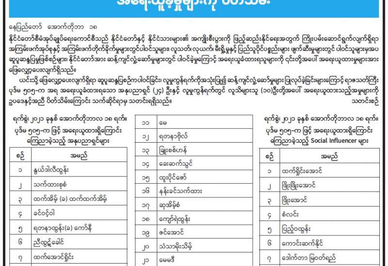 အနုပညာရှင်များနှင့် လူမှုကွန်ရက်တွက် လူသိများသူများအား အရေးယူခဲ့မှုများကို ပိတ်သိမ်း