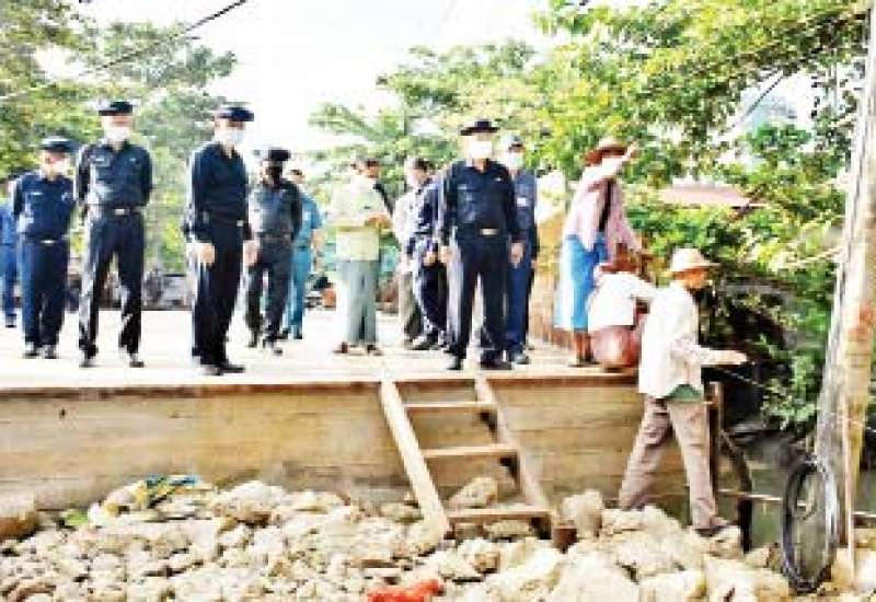 ရန်ကုန်တိုင်းဒေသကြီး စည်ပင်သာယာရေးဝန်ကြီး၊ ရန်ကုန်မြို့တော်စည်ပင်သာယာရေးကော်မတီ ဥက္ကဋ္ဌ (မြို့တော်ဝန်) ဦးဗိုလ်ဌေးသည် ယနေ့နံနက် ၇ နာရီ တွင် ရန်ကင်းမြို့နယ် ဆရာစံလမ်း၊ မြောက်မြင်းပြိုင် ကွင်းလမ်းနှင့် ဗဟန်းမြို့နယ် အနောက်မြင်းပြိုင် ကွင်းလမ်းဆုံ၌ အင်ဂျင်နီယာဌာန (လမ်းနှင့်တံတား) မှ တာဝန်ယူဆောင်ရွက်နေသည့် ဧရိယာ ၈၀၀၂၈ စတုရန်းပေ၊ ဒု ၁၁ လက်မရှိ လမ်းသားတင်ကွန်ကရစ် ခင်းကျင်းပြီးစီးနေမှုနှင့် အနောက်မြင်းပြိုင်ကွင်း လမ်းတစ်လျှောက် ရေစီးရေလာကောင်းမွန်စေရန် ရှင်းလင်းဆောင်ရွက်နေမှုများကို ကြည့်ရှုစစ်ဆေးပြီး လိုအပ်သည်များ ဖြည့်ဆည်းဆောင်ရွက်ပေးသည်။