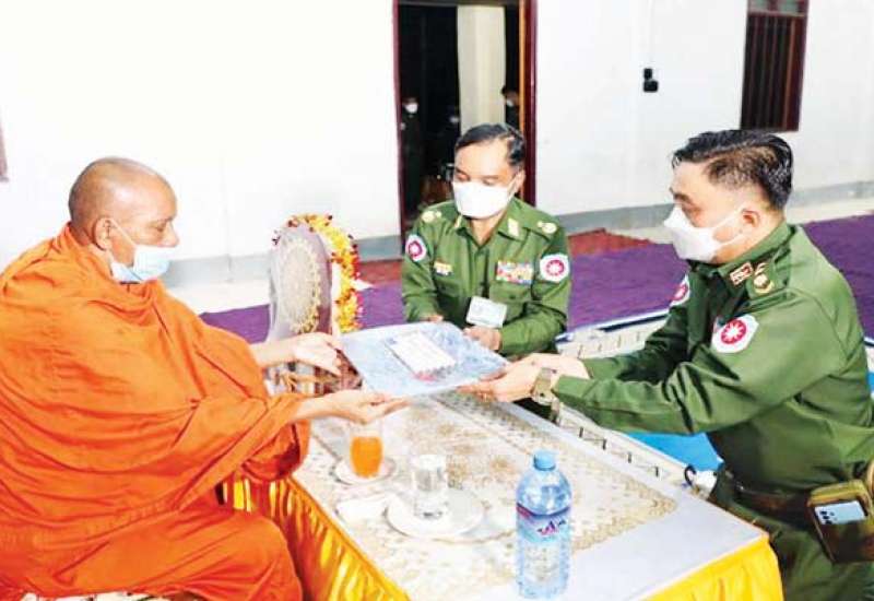 ကိုဗစ်-၁၉ ရောဂါ ကြိုတင်ကာကွယ်ရေးလုပ်ငန်းများ ဆောင်ရွက်နေသည့်ကာလ အတွင်း ဆွမ်းကိစ္စရပ်များ အဆင်ပြေစေရန် ရည်ရွယ်၍ တပ်မတော်(ကြည်း၊ရေ၊ လေ) အရာရှိ၊ စစ်သည်၊ အရာထမ်း၊ အမှုထမ်းများနှင့် စေတနာရှင်အလှူရှင်များက မြို့နယ် အသီးသီးရှိ ဘုန်းတော်ကြီးကျောင်းများ၊ သာသနာနွယ်ဝင် သီလရှင်ကျောင်းများနှင့် ဘာသာရေးကျောင်းများသို့ ဆွမ်းဆန်တော်၊ ဆီ၊ ဆား၊ ပဲ အမယ်လေးမျိုးနှင့် လှူဖွယ် ပစ္စည်းများ လှူဒါန်းခြင်း၊ နေ့ဆွမ်းများဆက်ကပ်လှူဒါန်းခြင်းနှင့် ကျန်းမာရေး စစ်ဆေး ပေးခြင်းများကို ဆောင်ရွက်လျက်ရှိသည်။