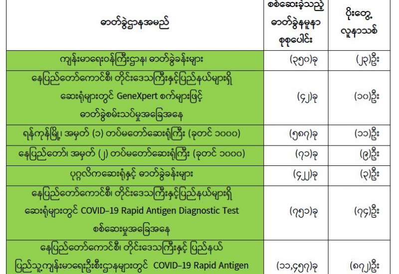 ကျန်းမာရေးဝန်ကြီးဌာနအနေဖြင့် နိုင်ငံအတွင်း ကူးစက်ဖြစ်ပွားနေသော COVID-19 ရောဂါ ကာကွယ်၊ ကုသ၊ ထိန်းချုပ်ရေး လုပ်ငန်းများကို အရှိန်အဟုန်မြှင့်ဆောင်ရွက်လျက်ရှိရာ ရောဂါ ထိန်းချုပ်ရေးလုပ်ငန်းများ အောင်မြင်နိုင်ရေးအတွက် ပြည်သူလူထု အနေဖြင့် -