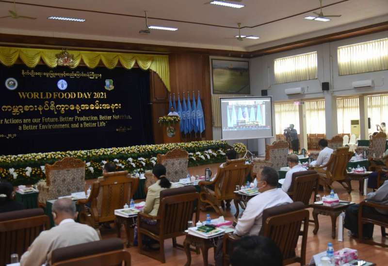 ၂၀၂၁ ခုနှစ်၊ ကမ္ဘာ့စားနပ်ရိက္ခာနေ့ အထိမ်းအမှတ်အခမ်းအနားကို ယနေ့နံနက် ၉ နာရီ ခွဲတွင် နေပြည်တော်ရှိ စိုက်ပျိုးရေး၊ မွေးမြူရေးနှင့် ဆည်မြောင်းဝန်ကြီးဌာန ပြည်ထောင်စု ဝန်ကြီးရုံး အစည်းအဝေးခန်းမ၌ ကျင်းပသည်။