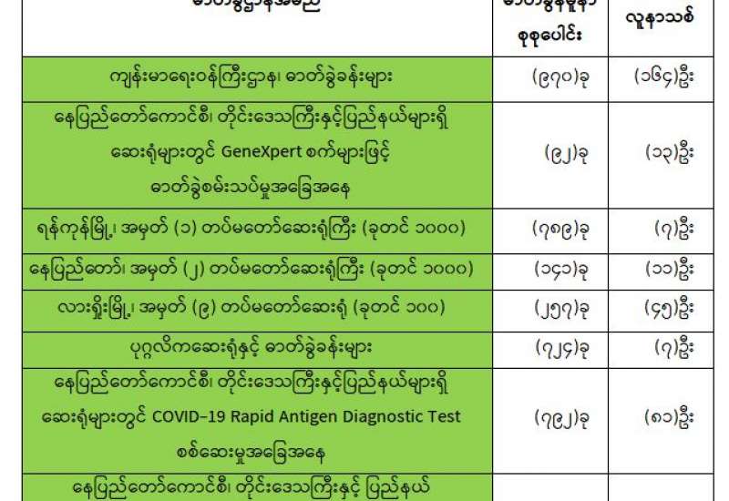 ကျန်းမာရေးဝန်ကြီးဌာနအနေဖြင့် နိုင်ငံအတွင်း ကူးစက်ဖြစ်ပွားနေသော COVID-19 ရောဂါ ကာကွယ်၊ ကုသ၊ ထိန်းချုပ်ရေးလုပ်ငန်းများကို အရှိန်အဟုန်မြှင့်ဆောင်ရွက်လျက်ရှိရာ ရောဂါ ထိန်းချုပ်ရေးလုပ်ငန်းများ အောင်မြင်နိုင်ရေးအတွက် ပြည်သူလူထုအနေဖြင့် -