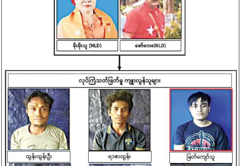 အကြမ်းဖက်အဖွဲ့အစည်းဖြစ်သော NUG ၏ စေခိုင်းချက်အရစက်ရုံ၊ အလုပ်ရုံ များအားမီးရှို့ဖောက်ခွဲဖျက်ဆီးခြင်းနှင့် အပြစ်မဲ့ပြည်သူများအား အဓိကပစ်မှတ်ထား၍ သတ်ဖြတ်ခြင်းတို့အား ဆောင်ရွက်နိုင်မှုမရှိစေရေး ဖော်ထုတ်ဖမ်းဆီးမှုများ ဆောင်ရွက် လျက်ရှိရာ ထားဝယ်မြို့၊