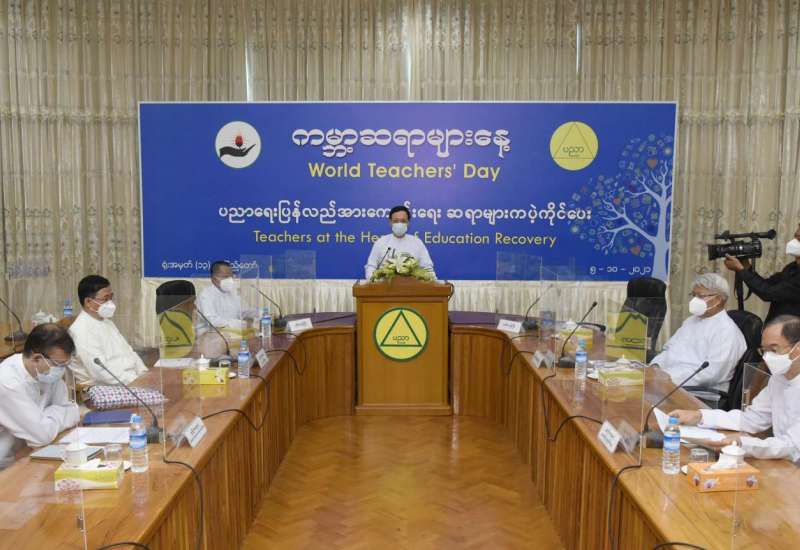 ၂၀၂၁ ခုနှစ်၊ ကမ္ဘာ့ဆရာများနေ့ အခမ်းအနားကို ယနေ့နံနက် (၉) နာရီတွင် နေပြည်တော်ရှိ ပညာရေးဝန်ကြီးဌာန ရုံးအမှတ် (၁၃) အစည်းအဝေးခန်းမ၌ ကျင်းပသည်။