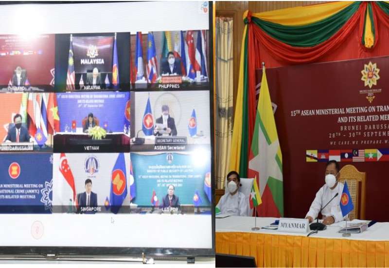 အာဆီယံ၏ နိုင်ငံရေးနှင့်လုံခြုံရေးအသိုက်အဝန်း(APSC) မဏ္ဍိုင်မှ (၁၅) ကြိမ်မြောက် အာဆီယံဝန်ကြီးအဆင့် နိုင်ငံဖြတ်ကျော်မှု ခင်းတိုက်ဖျက်ရေးဆိုင်ရာ အစည်းအဝေး(15th AMMTC) နှင့် ဆက်စပ်အစည်းအဝေးများကို ယနေ့နံနက်ပိုင်းတွင် ဘရူနိုင်းဒါရုဆလမ်နိုင်ငံက ဗီဒီယိုကွန်ဖရင့်စနစ်ဖြင့် အိမ်ရှင်နိုင်ငံအဖြစ် ဦးဆောင်ကျင်းပသည်။