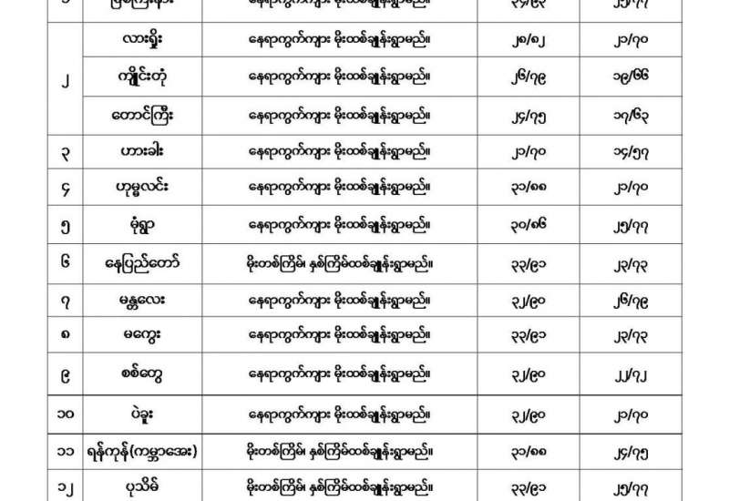 မနက်ဖြန်အတွက် တိုင်းဒေသကြီးနှင့် ပြည်နယ်များရှိ မြို့ကြီးများ၏ အမြင့်ဆုံးအပူချိန်၊ အနိမ့်ဆုံးအပူချိန်နှင့် မိုးလေဝသခန့်မှန်းချက် #မိုးလေဝသနှင့်ဇလဗေဒညွှန်ကြားမှုဦးစီးဌာန