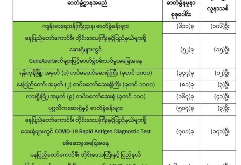 ကျန်းမာရေးဝန်ကြီးဌာနအနေဖြင့် နိုင်ငံအတွင်း ကူးစက်ဖြစ်ပွားနေသော COVID-19 ရောဂါ ကာကွယ်၊ ကုသ၊ ထိန်းချုပ်ရေး လုပ်ငန်းများကို အရှိန်အဟုန်မြှင့်ဆောင်ရွက်လျက်ရှိရာ ရောဂါ ထိန်းချုပ်ရေးလုပ်ငန်းများ အောင်မြင်နိုင်ရေးအတွက် ပြည်သူလူထု အနေဖြင့် -