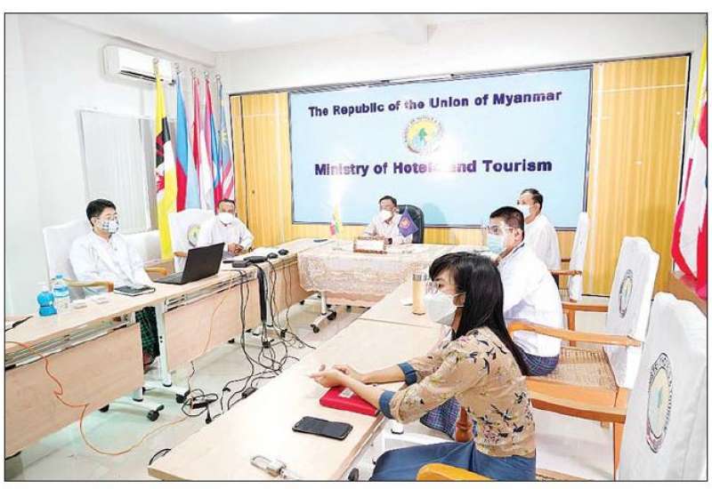 ဟိုတယ်နှင့်ခရီးသွားလာရေးဝန်ကြီးဌာန ပြည်ထောင်စုဝန်ကြီး ဒေါက်တာဌေးအောင်သည် အာဆီယံ - ကိုရီးယားဗဟိုဌာနနှင့် ကိုရီးယားနိုင်ငံ ခရီးသွားလုပ်ငန်းအဖွဲ့ အစည်းက “Rebooting Digital Marketing for Tourism” ခေါင်းစဉ်ဖြင့် ယနေ့ နံနက်ပိုင်းတွင် Online Live Streaming စနစ်ဖြင့် ကျင်းပသည့် အာဆီယံ- ကိုရီးယား ခရီးသွားလုပ်ငန်း ဆွေးနွေးပွဲ (Seminar on ASEAN-Korea Tourism 2021)ကို ဟိုတယ်နှင့် ခရီးသွားညွှန်ကြားမှုဦးစီးဌာနမှ ညွှန်ကြားရေးမှူးချုပ်နှင့် တာဝန်ရှိသူများ တက်ရောက်နေမှုကို ကြည့်ရှုအားပေးသည်။