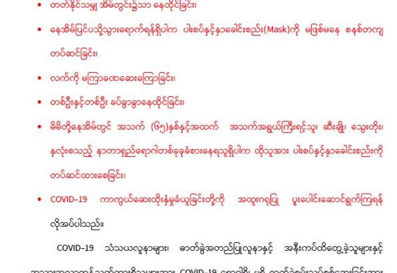 Coronavirus Disease 2019 (COVID-19) ကာကွယ်၊ ထိန်းချုပ်၊ ကုသရေးဗဟိုကော်မတီမှ အသိပေးကြေညာချက်