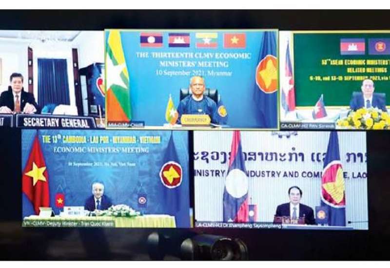 (၁၃)ကြိမ်မြောက် ကမ္ဘောဒီးယား၊ လာအို၊ မြန်မာ၊ ဗီယက်နမ် (စီအယ်လ်အမ်ဗွီ) စီးပွားရေး ဝန်ကြီးများ အစည်းအဝေးကို ယနေ့တွင် video conference စနစ်ဖြင့် ကျင်းပရာ ကမ္ဘောဒီးယား၊ လာအို၊ မြန်မာ၊ ဗီယက်နမ်နိုင်ငံတို့မှ စီးပွားရေးဝန်ကြီးများ၊ အာဆီယံ အတွင်းရေးမှူးချုပ်နှင့် တာဝန်ရှိသူများ တက်ရောက်ကြပြီး ရင်းနှီးမြှုပ်နှံမှုနှင့် နိုင်ငံခြားစီးပွား ဆက်သွယ်ရေးဝန်ကြီးဌာန ပြည်ထောင်စုဝန်ကြီး ဦးအောင်နိုင်ဦးက အစည်းအဝေး သဘာပတိ အဖြစ် ဆောင်ရွက်သည်။