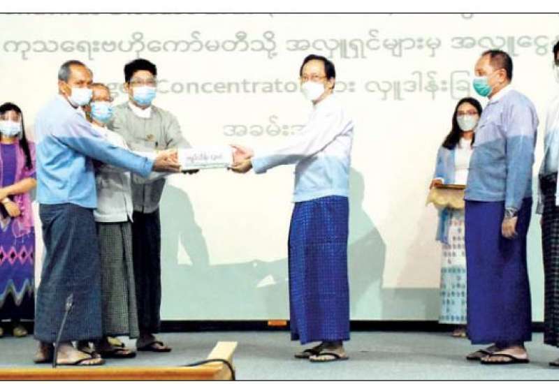 Coronavirus Disease 2019 (COVID-19) copolကာကွယ်၊ ထိန်းချုပ်၊ ကုသရေး ဗဟိုကော်မတီ သို့ အလှူငွေနှင့် Oxygen Concentratorများ လှူဒါန်းခြင်း အခမ်းအနားကို ယနေ့ မွန်းလွဲပိုင်း တွင် ကျန်းမာရေးဝန်ကြီးဌာန covID-19 Central Command Center တွင် ကျင်းပသည်။