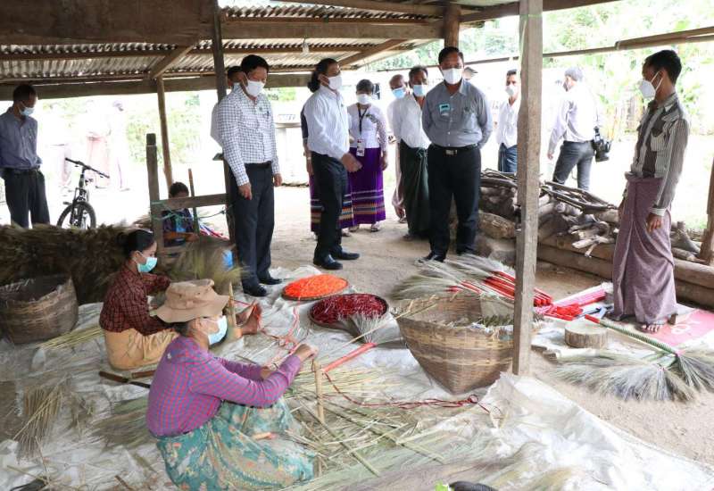 သမဝါယမနှင့် ကျေးလက်ဖွံ့ဖြိုးရေးဝန်ကြီးဌာန ပြည်ထောင်စုဝန်ကြီး ဦးလှမိုးသည် ယနေ့ နံနက်ပိုင်းတွင် နေပြည်တော်ကောင်စီနယ်မြေ ပုဗ္ဗသီရိမြို့နယ်နှင့် တပ်ကုန်းမြို့နယ်အတွင်း ဒေသဖွံ့ဖြိုးရေးလုပ်ငန်းများ အကောင်အထည်ဖော် ဆောင်ရွက်ပြီးစီးမှု အခြေအနေများ၊ ကျေးလက်နေတောင်သူများ၏ လူမှုစီးပွားဘဝမြင့်မားလာစေရန် ဒေသထွက်ကုန် မျှစ်ခြောက် ထုတ်လုပ်မှု၊ ဝါးကုန်ကြမ်းကို တန်ဖိုးမြင့်ထုတ်ကုန် လက်မှုထည်အဖြစ် အဆင့်မြှင့်တင် ထုတ်လုပ်နိုင်ရန် ဆောင်ရွက်နေမှုနှင့် ဝိုင်ချက်စက်ရုံတို့ကို ကြည့်ရှုစစ်ဆေးသည်။