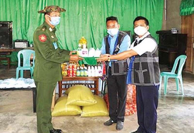 ကိုဗစ်- ၁၉ ရောဂါ ကာကွယ်၊ ထိန်းချုပ်၊ ကုသရေးလုပ်ငန်းများကို အရှိန် အဟုန်မြှင့် ဆောင်ရွက်လျက်ရှိရာ သွားလာမှုကန့်သတ်ချက်များကြောင့် စစ်မှုထမ်း ဟောင်းအဖွဲ့ဝင်များ၊ မြန်မာနိုင်ငံရဲတပ်ဖွဲ့ဝင်များ၊ ပြည်သူ့စစ်(ဌာနေ)တပ်ဖွဲ့ဝင်များ၊ ကျန်းမာရေးဝန်ထမ်းများ၊ ပရဟိတအသင်းအဖွဲ့များ၊ စေတနာ့ဝန်ထမ်း Volunteer များနှင့် ဒေသခံပြည်သူများ စားရေးအဆင်ပြေစေရေးအတွက် တပ်မတော်နှင့် စေတနာရှင်အလှူရှင်များက စားသောက်ဖွယ်ရာများ၊ ထောက်ပံ့ငွေများနှင့် ရောဂါ ကာကွယ်ရေး အထောက်အကူပြုပစ္စည်းများကို ထောက်ပံ့လှူဒါန်းလျက်ရှိသည်။