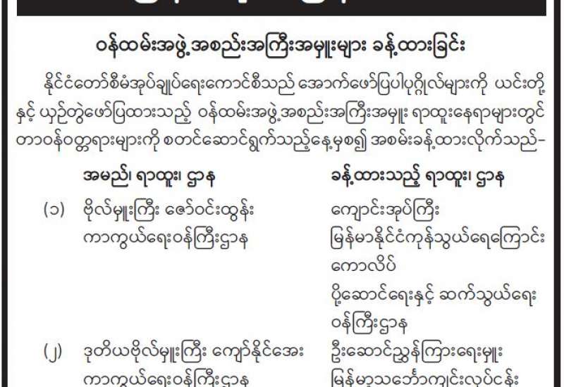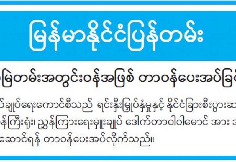 မြန်မာနိုင်ငံ သတင်းမီဒီယာကောင်စီဝင် ရွေးချယ်တင်မြှောက်ပွဲကို ယနေ့နံနက်ပိုင်းက ရန်ကုန်မြို့ ဗိုလ်တထောင်မြို့နယ် သိမ်ဖြူလမ်း အမှတ် (၂၂၈) ပုံနှိပ်ရေးနှင့် ထုတ်ဝေရေးဦးစီးဌာန ဗဟိုပုံနှိပ်စက်ရုံဝင်း ပထမထပ် စုဝေးခန်းမ၌ ကျင်းပသည်။
