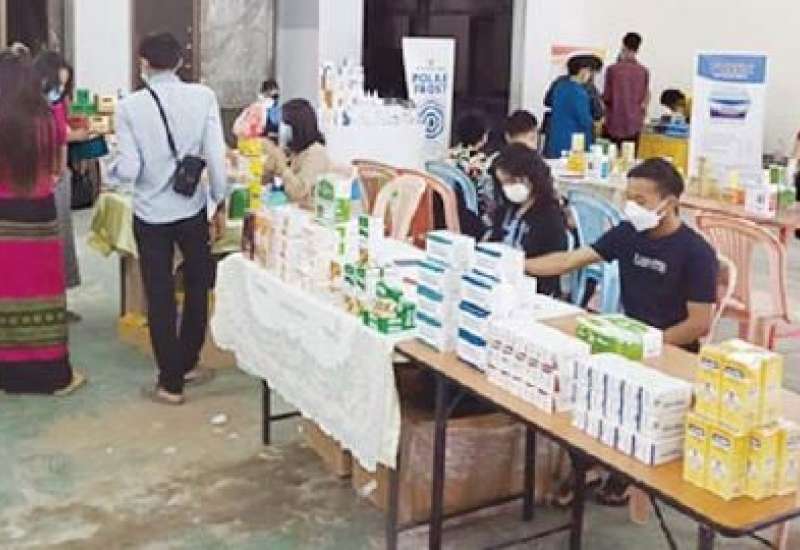 ကိုဗစ်-၁၉ ရောဂါ တတိယလှိုင်းဖြစ်ပွားနေသည့်ကာလအတွင်း ရန်ကုန်တိုင်းဒေ သကြီးအတွင်းရှိ ပြည်သူများ၏ ဆေးဝါးလိုအပ်ချက်အား ဖြည့်ဆည်းပေးနိုင်ရေး၊ ဆေးဝါးများလွယ်လင့်တကူ ဝယ်ယူနိုင်ရေး အရည်အသွေးနှင့် ဈေးနှုန်း မှန်ကန်စွာရရှိစေ ရေးအတွက် ရန်ကုန်တိုင်းဒေသကြီး အစိုးရအဖွဲ့၏ ညွှန်ကြားချက်အရ မြန်မာနိုင်ငံ ဆေးနှင့် ဆေးပစ္စည်းလုပ်ငန်းရှင်များအသင်း၏စီစဉ်မှုဖြင့် ဒုတိယနေရာအဖြစ် ပန်းဘဲတန်းမြို့နယ်၊ ကုန်သည် လမ်းနှင့် ဗိုလ်ဆွန်ပက်လမ်းထောင့်ရှိ မြန်မာ အပြည်ပြည်ဆိုင်ရာကုန် သွယ်မှုဗဟိုဌာန အဆောက်အအုံ၌ အိမ်သုံးဆေးဝါးများ လက်လီ လက်ကား ဖြန့်ဖြူး ရောင်းချခြင်းအစီအစဉ်ကို ယနေ့တွင် ဆောင်ရွက်ခဲ့ရာ ဆေးနှင့် ဆေးပစ္စည်း ဖြန့်ဖြူး ရောင်းချသောကုမ္ပဏီ ၁၂ ခုမှ အိမ်သုံးဆေးဝါး ၁၅၄ မျိုးအား ရောင်းချ ပေးလျက်ရှိပြီး ၃၂ သိန်းကျော် တန်ဖိုးရှိ ဆေးနှင့်ဆေးပစ္စည်းများကို ရောင်းချခဲ့သည်။