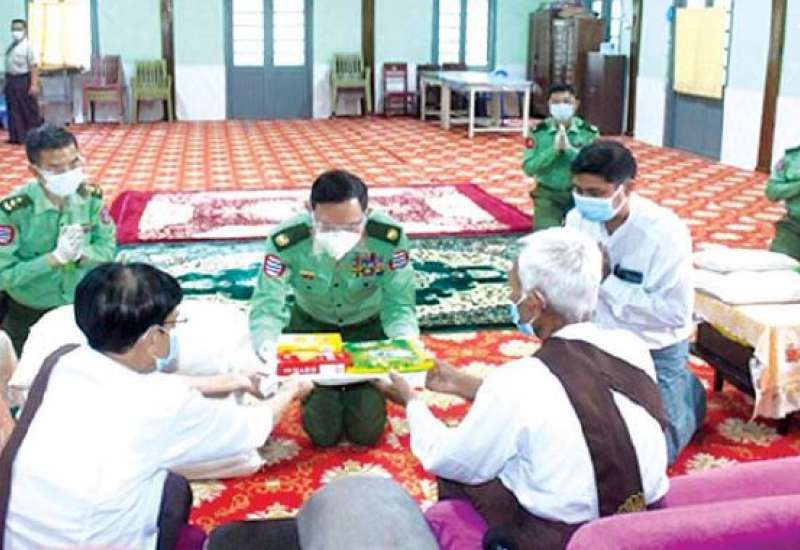 တပ်မတော်(ကြည်း၊ရေ၊လေ) အရာရှိ၊ စစ်သည်၊ အရာထမ်း၊ အမှုထမ်းများနှင့် စေတနာရှင်အလှူရှင်များက ကိုဗစ်-၁၉ ရောဂါ ကြိုတင်ကာကွယ်ရေးလုပ်ငန်းများ ဆောင်ရွက်နေသည့် ကာလအတွင်း ဆွမ်းကိစ္စရပ်များ အဆင်ပြေစေရန်ရည်ရွယ်၍ မြို့နယ်အသီးသီးရှိ ဘုန်းတော်ကြီးကျောင်းများ၊ သာသနာ့နွယ်ဝင် သီလရှင်ကျောင်း များနှင့် ဘာသာရေးကျောင်းများတွင် ဆွမ်းဆန်တော်၊ ဆီ၊ ဆား၊ ပဲ အမယ်(၄)မျိုးနှင့် လှူဖွယ်ပစ္စည်းများလှူဒါန်းခြင်း၊ နေ့ဆွမ်းများ ဆက်ကပ်လှူဒါန်းခြင်းနှင့် ကျန်းမာရေး စစ်ဆေးပေးခြင်းများကို ဆောင်ရွက်လျက်ရှိသည်။
