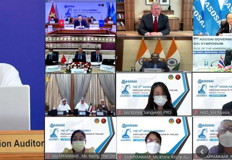 အာရှတိုက်ဆိုင်ရာ စာရင်းစစ်ချုပ်ရုံးများအဖွဲ့ (Asian Organization of Supreme Audit Institutions:(ASOSAI) ၏ (၁၅) ကြိမ်မြောက်စုံညီ ညီလာခံကို ထိုင်းနိုင်ငံက အိမ်ရှင်အဖြစ် ဦးဆောင်၍ ယနေ့မွန်းလွဲပိုင်းတွင် ဗီဒီယိုကွန်ဖရင့်ဖြင့် ကျင်းပရာ ပြည်ထောင်စုစာရင်းစစ်ချုပ်၊ ဒေါက်တာ ကံဇော် ဦးဆောင်သည့် ကိုယ်စားလှယ်အဖွဲ့ တက်ရောက်ကြသည်။