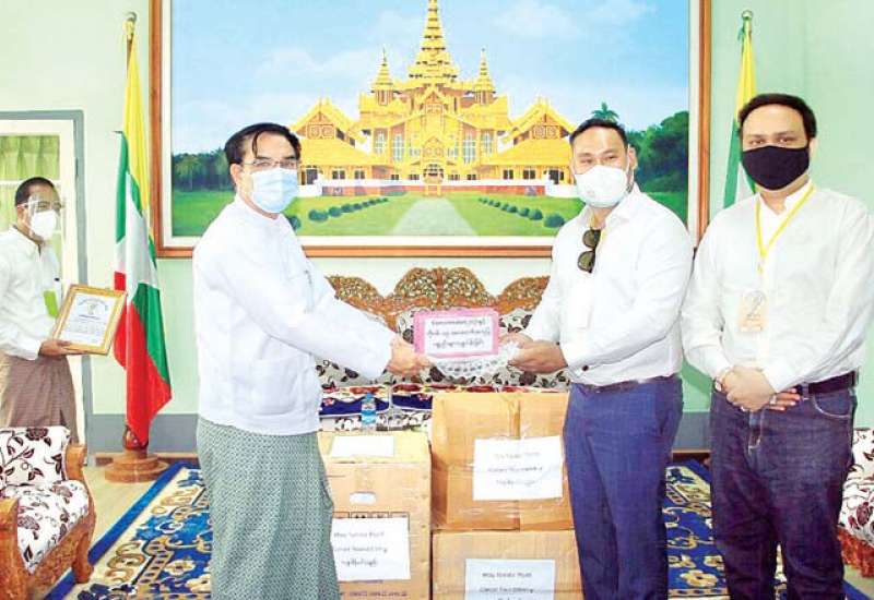 ပဲခူးတိုင်းဒေသကြီးအတွင်း ကိုဗစ်-၁၉ ကာကွယ် ထိန်းချုပ်၊ ကုသရေး လုပ်ငန်းစဉ်တွင် အသုံးပြုရန် Titans Thiha Group of Co., Ltdı Mingalar Than Myaint Energy Co.,Ltd နှင့် ဌေးနန္ဒာမြင့် ကင်ဆာဖောင်ဒေးရှင်းတို့က ကျန်းမာရေးသုံး အထောက်အကူပြုပစ္စည်းများကို ယနေ့မွန်းလွဲပိုင်း တွင် တိုင်းဒေသကြီး ဝန်ကြီးချုပ်၏ ဧည့်ခန်းမသို့ လာရောက်လှူဒါန်းသည်။