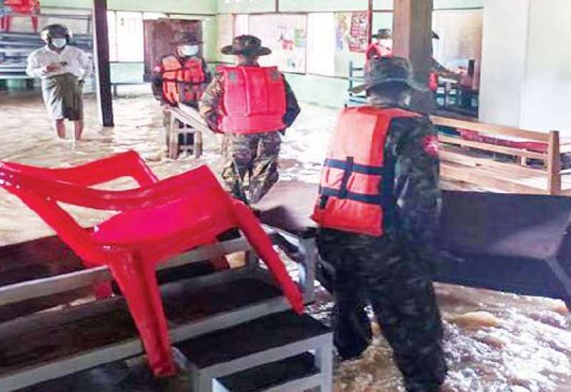 ပဲခူးတိုင်းဒေသကြီး၊ အုတ်တွင်းမြို့နယ်အတွင်း တောင်ကျရေများကျဆင်းပြီး ဘုံချောင်း၊ နတ်ရေတွင်းချောင်းနှင့် ကျွဲမသေချောင်းတို့ ရေလျှံမှုများကြောင့် အုတ်တွင်း မြို့နယ်၊ ကျွဲပွဲမြို့နှင့် ညောင်ခြေထောက်မြို့တို့ရှိ ကျေးရွာများ၊ ကားလမ်း၊ ရထားလမ်းတို့၌ ရေဝင်ရောက်မှုများဖြစ်ပေါ်ခဲ့ရာ ယနေ့တွင် တောင်ပိုင်းတိုင်းစစ်ဌာနချုပ်မှ နယ်မြေခံ တပ်မတော်သားများ၊ မြန်မာနိုင်ငံရဲတပ်ဖွဲ့ဝင်များ၊ မီးသတ်တပ်ဖွဲ့ဝင်များ၊ ဌာနဆိုင်ရာ ဝန်ထမ်းများနှင့် စေတနာ့ဝန်ထမ်းများ ပူးပေါင်း၍ ရေဘေးကူညီကယ်ဆယ်ရေး လုပ်ငန်းများ ဆောင်ရွက်ပေးသည်။