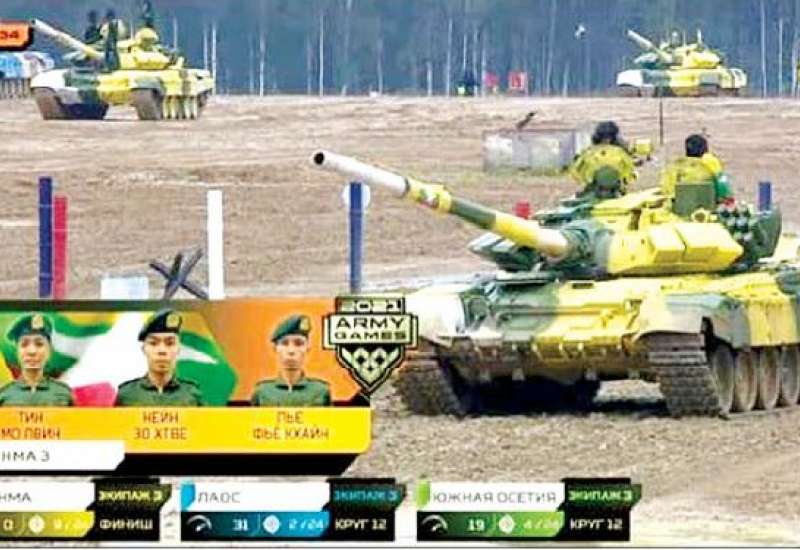 မြန်မာ့တပ်မတော်တင့်တပ်ဖွဲ့အနေဖြင့် ရုရှားဖက်ဒရေးရှင်းနိုင်ငံတွင် ဩဂုတ် ၂၂ ရက်မှစတင်၍ ကျင်းပလျက်ရှိသည့် International Army Games-2021 ပြိုင်ပွဲတွင် ပါဝင်သော တင့်ကား မောင်းနှင်ပစ်ခတ်ခြင်းပြိုင်ပွဲ Tank Biathlon (Division-2) ၌ ဝင်ရောက်ယှဉ်ပြိုင်လျက်ရှိပြီး အုပ်စုပွဲစဉ်များကို အဆင့်ဆင့်ဖြတ်ကျော်ကာ အုပ်စုဒုတိယနေရာမှ ရပ်တည်နိုင်ခဲ့ပြီး ဗိုလ်လုပွဲ အဆင့်သို့ ထိုက်တန်စွာ တက်ရောက်နိုင်ခဲ့ကြောင်း သိရသည်။