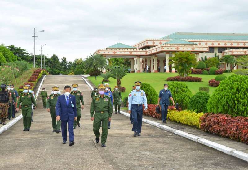 နိုင်ငံတော်စီမံအုပ်ချုပ်ရေးကောင်စီဥက္ကဋ္ဌ၊ တပ်မတော်ကာကွယ်ရေးဦးစီးချုပ် ဗိုလ်ချုပ်မှူးကြီး မင်းအောင်လှိုင်သည် ရုရှားဖက်ဒရေးရှင်းနိုင်ငံ၊ ကာကွယ်ရေးဝန်ကြီး Army General Kuzhugetovich Shoigu ၏ ဖိတ်ကြားချက်အရ ရုရှားဖက်ဒရေးရှင်း နိုင်ငံတွင် ကျင်းပပြုလုပ်လျက်ရှိသည့် International Army Games-2021 ပိတ်ပွဲအခမ်းအနားသို့ တက်ရောက်ရန် ရုရှားဖက်ဒရေးရှင်းနိုင်ငံ သို့ ထွက်ခွာမည့် နိုင်ငံတော်စီမံအုပ်ချုပ်ရေးကောင်စီ ဒုတိယဥက္ကဋ္ဌ၊ ဒုတိယတပ်မတော်ကာကွယ်ရေး ဦးစီးချုပ် ကာကွယ်ရေးဦးစီးချုပ်(ကြည်း) ဒုတိယဗိုလ်ချုပ်မှူးကြီး စိုးဝင်း ဦးဆောင်သည့် ကိုယ်စားလှယ်အဖွဲ့အား ယနေ့နံနက်ပိုင်းတွင် လေဆိပ်၌ ပို့ဆောင်နှုတ်ဆက်သည်။