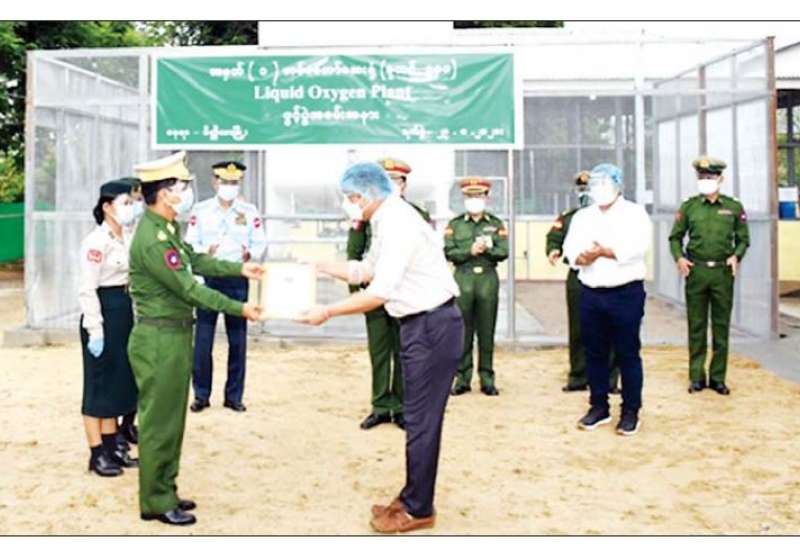 မန္တလေးတိုင်းဒေသကြီး မိတ္ထီလာမြို့ရှိ တပ်မတော်ဆေးရုံ၌ တည်ဆောက်ပြီးစီးသွားသည့် တန် ၂၀ my Liquid Oxygen Plant ဖွင့်ပွဲကို ယနေ့ နံနက်ပိုင်းတွင် အဆိုပါ ဆေးရုံ၌ ပြုလုပ်ရာ အလယ်ပိုင်း တိုင်းစစ်ဌာနချုပ် တိုင်းမှူး ဗိုလ်ချုပ် ကိုကိုဦးနှင့် တာဝန်ရှိသူများ၊ အလှူရှင်များ တက်ရောက် ကြသည်။