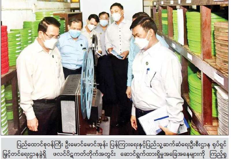ပြန်ကြားရေးဝန်ကြီးဌာန ပြည်ထောင်စုဝန်ကြီး ဦးမောင်မောင်အုန်းသည် ယနေ့ နံနက်ပိုင်းတွင် ရန်ကုန်မြို့ ဗဟန်းမြို့နယ်ရှိ ပြန်ကြားရေးနှင့် ပြည်သူ့ဆက်ဆံရေးဦးစီးဌာန ဖလင်ပိဋကတ်တိုက်နှင့် ရုပ်ရှင်စတူဒီယိုတို့သို့ ရောက်ရှိပြီး လုပ်ငန်းဆောင်ရွက်နေမှု အခြေအနေများကို ကြည့်ရှုစစ်ဆေးသည်။