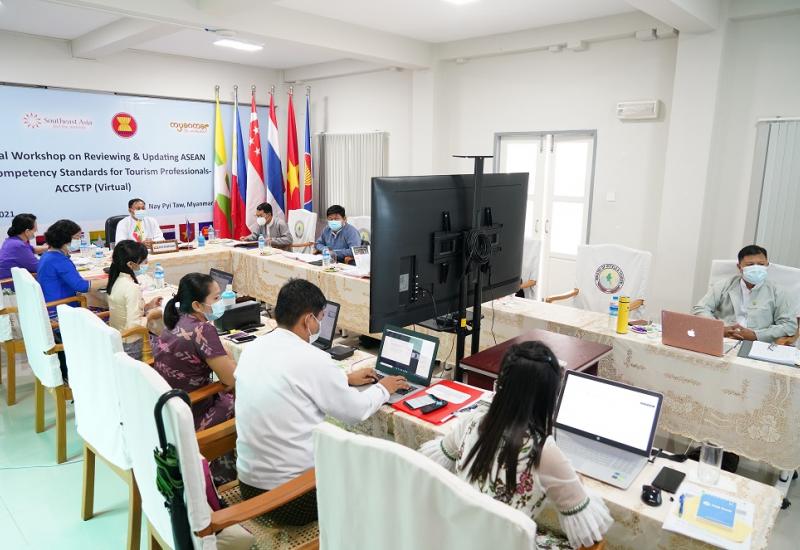 အာဆီယံခရီးသွားလုပ်ငန်း ကျွမ်းကျင်ပညာရှင်များအတွက် ကျွမ်းကျင်မှုစံနှုန်းများ ပြန်လည်သုံးသပ်ခြင်းနှင့် မွမ်းမံပြင်ဆင်ခြင်းဆိုင်ရာ ဒုတိယအကြိမ် ဒေသတွင်းအလုပ်ရုံ ဆွေးနွေးပွဲ (2nd Regional Workshop on Reviewing and Updating the ASEAN Common Competency Standards for Tourism Professionals-ACCSTP) ကို ဇွန် ၂၉ ရက်နှင့် ယနေ့တွင် ဗီဒီယိုကွန်ဖရင့်စနစ်ဖြင့် ဟိုတယ်နှင့် ခရီးသွားလာရေး ဝန်ကြီးဌာနက အိမ်ရှင်အဖြစ် လက်ခံကျင်းပသည်။