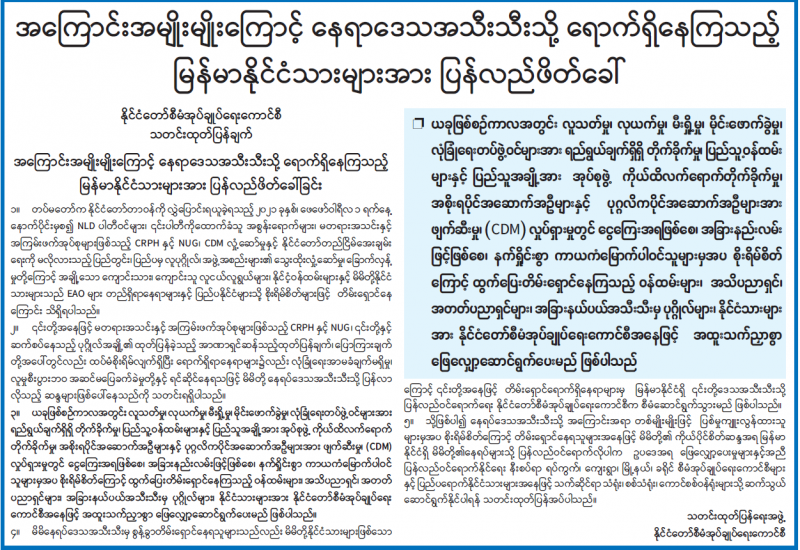 လုပ်ငန်းသုံးယာဉ်အုပ်စုတွင် ပါဝင်ပြီးအထူးတည်ဆောက်ထားသည့် Special Purpose Vehicle ယာဉ်များ တင်သွင်းမှုနှင့် သက်ဆိုင်သော မူဝါဒလုပ်ထုံး လုပ်နည်းများ ညှိနှိုင်းအစည်း အဝေးနှင့် နယ်စပ်ကုန်သွယ်ရေးအသင်းများနှင့် ကုန်သွယ်မှုကိစ္စရပ်များ ဆွေးနွေးခြင်း အစည်း အဝေးများတို့ကို ယနေ့မွန်းလွဲပိုင်းတွင် စီးပွားရေးနှင့် ကူးသန်းရောင်းဝယ်ရေးဝန်ကြီးဌာန ဝန်ကြီးရုံး အစည်းအဝေးခန်းမ၌ ကျင်းပသည်။