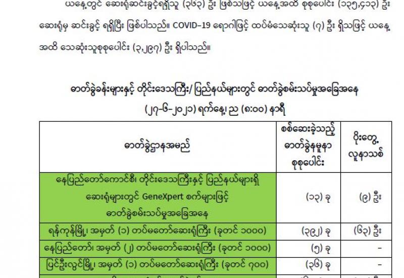(၂၀၂၁ ခုနှစ်၊ ဇွန်လ (၂၇)ရက်နေ့ည(၇:၀၀)နာရီအချိန် ထုတ်ပြန်ချက်)