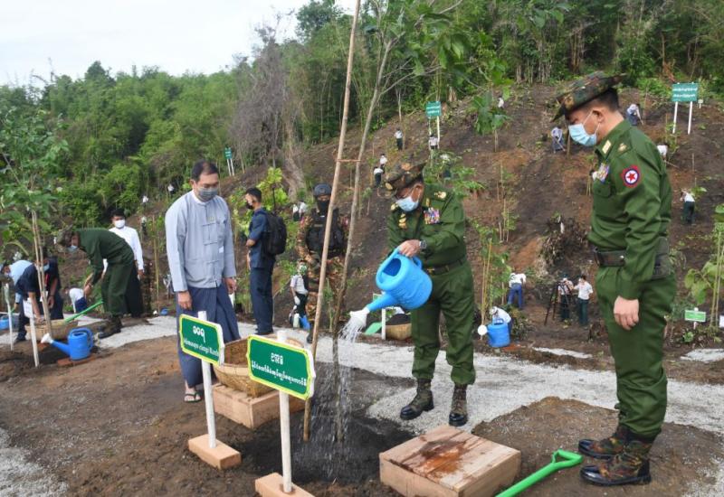၂၀၂၁ ခုနှစ် ပတ်ဝန်းကျင် စိမ်းလန်းစိုပြည်ရေးလှုပ်ရှားမှု မိုးရာသီသစ်ပင်စိုက်ပျိုးပွဲ အခမ်းအနား ကို ယနေ့နံနက် ၇ နာရီခွဲတွင် နေပြည်တော် ဥတ္တရသီရိမြို့နယ် နေပြည်တော်-တပ်ကုန်း အမှတ် (၁) လမ်းဘေးရှိ ဖိုးဇောင်တောင်ကြိုးဝိုင်း အကွက်အမှတ်(၁၇)၌ ကျင်းပရာ နိုင်ငံတော် စီမံအုပ်ချုပ်ရေးကောင်စီဥက္ကဋ္ဌ၊ တပ်မတော်ကာကွယ်ရေးဦးစီးချုပ် ဗိုလ်ချုပ်မှူးကြီး မင်းအောင်လှိုင် တက်ရောက်၍ ခရေပျိုးပင်အား ဦးဆောင်စိုက်ပျိုးပေးသည်။