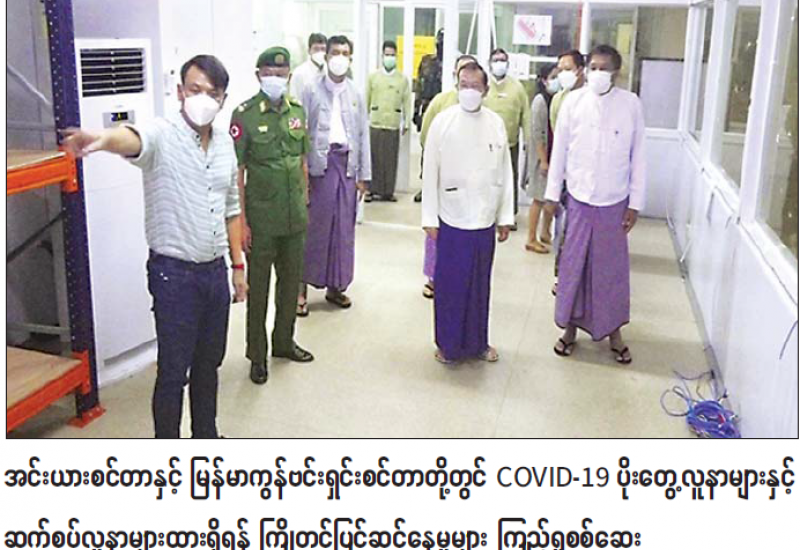 ရန်ကုန်တိုင်းဒေသကြီး မရမ်းကုန်း မြို့နယ်ရှိ အင်းယားစင်တာနှင့် မင်းဓမ္မလမ်းပေါ်ရှိ မြန်မာကွန်ဗင်း ရှင်းစင်တာ(MCC)တို့၌ COVD-19 ပိုးတွေ့လူနာများ ထားရှိရေး ကြိုတင် ပြင်ဆင်နေမှုများကို ယနေ့နံနက်ပိုင်းတွင် ရန်ကုန် တိုင်းဒေသကြီး စီမံအုပ်ချုပ်ရေးကောင်စီဥက္ကဋ္ဌ ဦးလှစိုး၊ ရန်ကုန် တိုင်းစစ်ဌာနချုပ် တိုင်းမှူး ဗိုလ်ချုပ် ညွန့်ဝင်းဆွေနှင့်တာဝန် ရှိသူများက သွားရောက်ကြည့်ရှု ကြသည်။