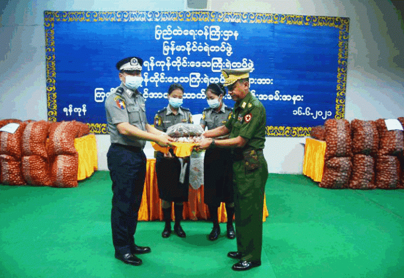 ရန်ကုန်တိုင်းဒေသကြီး၊ ဒဂုံမြို့နယ်ရှိ ရန်ကုန်တိုင်းဒေသကြီးရဲတပ်ဖွဲ့မှ ရဲတပ်ဖွဲ့ ဝင်များအား ယနေ့နံနက်ပိုင်းတွင် ရန်ကုန်တိုင်းစစ်ဌာနချုပ် တိုင်းမှူး ဗိုလ်ချုပ် ညွန့်ဝင်းဆွေ နှင့်အဖွဲ့ဝင်များက အဆိုပါရဲတပ်ဖွဲ့မှူးရုံး အစည်းအဝေး ခန်းမ၌ သွားရောက်တွေ့ဆုံသည်။