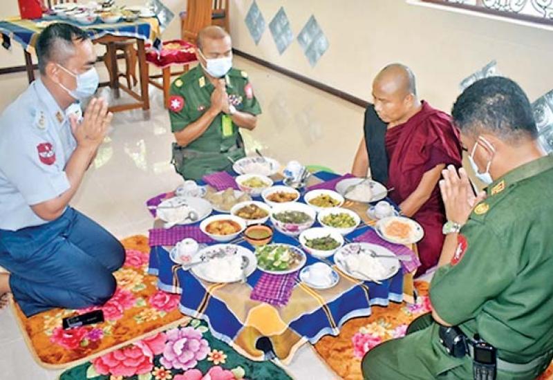 တပ်မတော် (ကြည်း၊ ရေ၊ လေ) အရာရှိ၊ စစ်သည်၊ အရာထမ်း၊ အမှုထမ်းများက တိုင်းစစ်ဌာနချုပ် များအလိုက် မြို့နယ်အသီးသီးရှိ ဘုန်းတော်ကြီးကျောင်းများ၊ သာသနာ့နွယ်ဝင် သီလရှင် ကျောင်းများနှင့် ဘာသာရေးကျောင်းများတွင် ဆွမ်းဆန်တော်၊ ဆီ၊ ဆား၊ ပဲ အမယ်လေးမျိုးနှင့် လှူဖွယ်ပစ္စည်းများလှူဒါန်းခြင်းနှင့် နေ့ဆွမ်းများ ဆက်ကပ် လှူဒါန်းခြင်းနှင့် ကျန်းမာရေး စစ်ဆေးပေးခြင်းများကို ဆောင်ရွက်လျက်ရှိသည်။