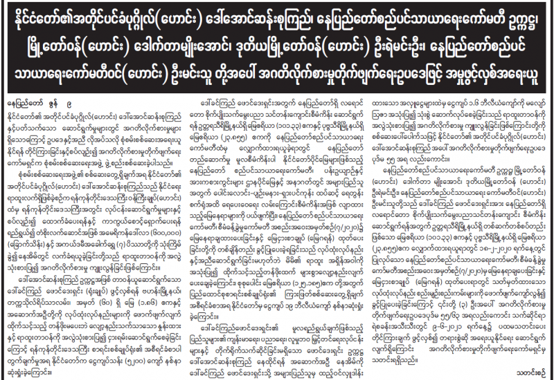 နိုင်ငံ၏ အုပ်ချုပ်မှုယန္တရားပုံမှန်လည်ပတ်ရေးနှင့် တိုင်းပြည်တည်ငြိမ် အေးချမ်း ရေးကို မလိုလားသည့် ဆူပူအကြမ်းဖက်လူတစ်စုက CDM လှုပ်ရှားမှုတွင် မပါဝင်သည့် ကျန်းမာရေးဝန်ထမ်းများ၊ ပညာရေးဝန်ထမ်းများ၊ ဘဏ်ဝန်ထမ်းများနှင့် ဌာနဆိုင်ရာ ဝန်ထမ်းများအား ဖိအားပေးခြိမ်းခြောက်ခြင်း၊ လှုံ့ဆော်ခြင်း၊ Social Punishment ပြုလုပ်ခြင်းများ လုပ်ဆောင်လျက်ရှိသဖြင့် လုံခြုံရေးတပ်ဖွဲ့ဝင်များက ဖမ်းဆီးထိန်း သိမ်း၍ လိုအပ်သလိုအရေးယူဆောင်ရွက်လျက်ရှိသည်။