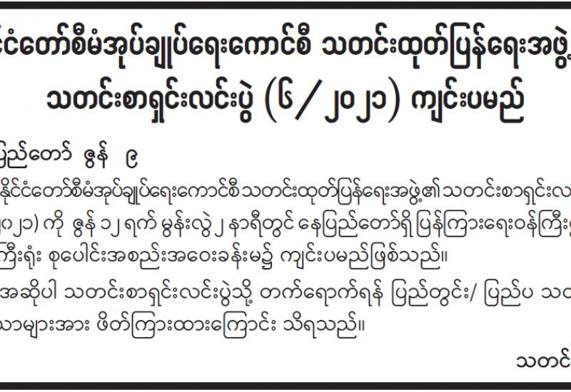 နိုင်ငံအဆင့်ပင်လယ်ကမ်းရိုးတန်း သယံဇာတစီမံအုပ်ချုပ်လုပ်ကိုင်မှု ဗဟိုကော်မတီ ပထမအကြိမ်အစည်းအဝေးကို ယနေ့ မွန်းလွဲ ၂ နာရီတွင် နေပြည်တော်ရှိ သယံဇာတနှင့် သဘာဝပတ်ဝန်းကျင်ထိန်းသိမ်းရေးဝန်ကြီးဌာန အင်းကြင်းခန်းမ၌ ကျင်းပရာ နိုင်ငံအဆင့် ပင်လယ်ကမ်းရိုးတန်း သယံဇာတစီမံအုပ်ချုပ်လုပ်ကိုင်မှု ဗဟိုကော်မတီ ဉက္ကဋ္ဌ နိုင်ငံတော်စီမံ အုပ်ချုပ်ရေးကောင်စီ ဒုတိယဥက္ကဋ္ဌ ဒုတိယတပ်မတော်ကာကွယ်ရေးဦးစီးချုပ် ကာကွယ်ရေး ဦးစီးချုပ်(ကြည်း) ဒုတိယဗိုလ်ချုပ်မှူးကြီး စိုးဝင်း တက်ရောက်အမှာစကားပြောကြားသည်။