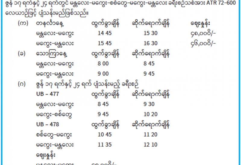 မန္တလေးတိုင်းဒေသကြီး ပြင်ဦးလွင်မြို့နယ်၊ သုံးတောင်ကျေးရွာအုပ်စု၊ ကျောက်ဖျာဒိုး ကျေးရွာတွင် ဆောက်လုပ်မည့် မဟာဝိသုတာရာမဈေးကုန်း ပရိယတ္တိစာသင်တိုက်ကြီး ပန္နက်တော်တင်မင်္ဂလာအခမ်းအနား ကျင်းပပြုလုပ်ရန်အတွက် ဈေးကုန်းဆရာတော် ဒေါက်တာဘဒ္ဒန္တကဝိသာရအပါအဝင် သံဃာနှင့် အလှူရှင် ၈ ဦးနှင့် အတူ လေယာဉ်အမှုထမ်း ၆ ဦးလိုက် ပါလာသည့် တပ်မတော်လေယာဉ်သည် ယနေ့နံနက် ၇ နာရီခန့်တွင် နေပြည်တော် လေဆိပ်မှ အနီးစခန်းလေဆိပ် (ပြင်ဦးလွင်) သို့ ထွက်ခွာလာရာ ၈ နာရီခန့်တွင် အနီးစခန်းလေဆိပ်သို့ ဆင်းသက်စဉ် လေဆိပ်အနီး ပြင်ဦးလွင် သံမဏိစက်ရုံ၏ အရှေ့တောင်ဘက် မီတာ ၄ဝဝ ခန့်အကွာ ခန့်မှန်းမြေပုံညွှန်း(ကေအီး-၃၃၄၃၃၂) အရောက်တွင် ဆက်သွယ်မှု ပြတ်တောက်ပျက်ကျခဲ့သည်။