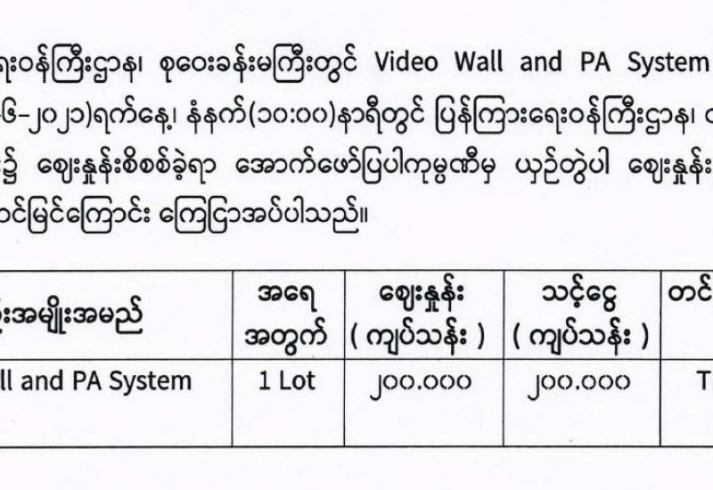 Electric Vehicle များ တင်သွင်းဆောင်ရွက်နိုင်မည့် အစီအစဉ်များ ဆွေးနွေးသုံးသပ်သည့် ညှိနှိုင်းအစည်းအဝေးကို ယနေ့နံနက် ၁၀ နာရီတွင် စီးပွားရေးနှင့်ကူးသန်းရောင်းဝယ်ရေး ဝန်ကြီးဌာန၊ ဝန်ကြီးရုံး အစည်းအဝေးခန်းမ၌ ကျင်းပသည်။