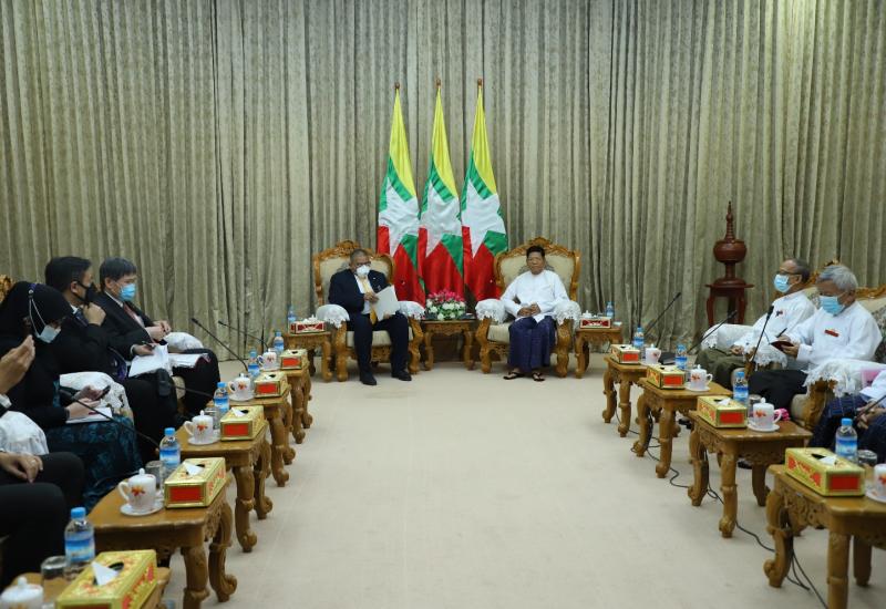နိုင်ငံတော်စီမံအုပ်ချုပ်ရေးကောင်စီ ဥက္ကဋ္ဌ၊ တပ်မတော်ကာကွယ်ရေးဦးစီးချုပ် ဗိုလ်ချုပ်မှူးကြီး မင်းအောင်လှိုင် သည် ဘရူနိုင်း ဒါရူဆလမ်နိုင်ငံ၊ နိုင်ငံခြားရေးဝန်ကြီး H.E. Dato Erywan Pehin Yusof နှင့် အာဆီယံ အတွင်း ရေးမှူးချုပ် H.E. Dato Lim Jock Hoi တို့အား ယနေ့နံနက်ပိုင်းတွင် နိုင်ငံတော် စီမံအုပ်ချုပ်ရေး ကောင်စီဥက္ကဋ္ဌရုံး သံတမန်ဆောင်၊ ဧည့်ခန်းမ ၌လက်ခံတွေ့ဆုံသည်။