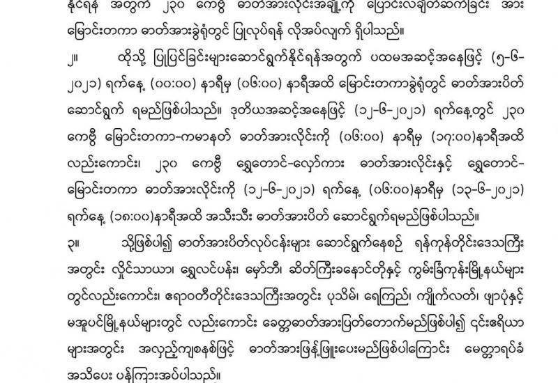 သာသနာရေးနှင့်ယဉ်ကျေးမှုဝန်ကြီးဌာန၊ သာသနာရေးဦးစီးဌာနက ကြီးမှူး၍ နှစ်စဉ်ကျင်းပ ပြုလုပ်သော ၂၀၂၁ ခုနှစ် ဓမ္မာစရိယစာမေးပွဲကို ယနေ့ (စတုတ္ထနေ့)တွင် နိုင်ငံတစ်ဝန်းလုံးရှိ စာဖြေဌာန ၅၉ ဌာနတို့တွင်