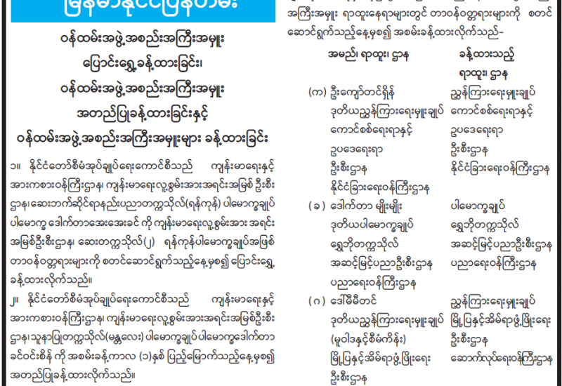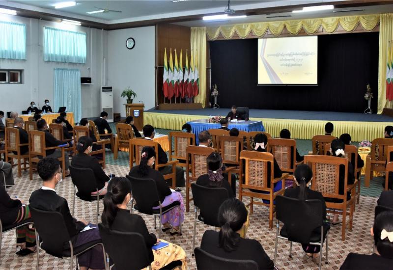 ပြည်ထောင်စုရှေ့နေချုပ်ရုံး၏ ဥပဒေရေးဆွဲခြင်းနှင့် ဥပဒေ(မူကြမ်း) စိစစ်အကြံပြုခြင်းဆိုင်ရာ သင်တန်းအမှတ်စဉ်၊ ၁/၂၀၂၁ ဖွင့်ပွဲအခမ်းအနားကို ယနေ့နံနက် ၁၀ နာရီက ပြည်ထောင်စု ရှေ့နေချုပ်ရုံး၌ ကျင်းပသည်။
