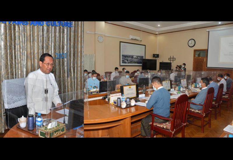 သာသနာရေးနှင့် ယဉ်ကျေးမှုဝန်ကြီးဌာန၏ ပထမအကြိမ် မြန်မာ့ရိုးရာယဉ်ကျေးမှု အဆို၊ အက၊ အတီးနှင့် ပန်းချီ၊ ပန်းပုပြိုင်ပွဲကျင်းပရေးအတွက် လုပ်ငန်းညှိနှိုင်းအစည်းအဝေးကို ယနေ့နံနက်ပိုင်းတွင် နေပြည်တော်ရှိ ရုံးအမှတ် (၃၅) သာသနာရေးနှင့် ယဉ်ကျေးမှုဝန်ကြီးဌာန လောကနတ် အစည်းအဝေးခန်းမ၌ ကျင်းပသည်။