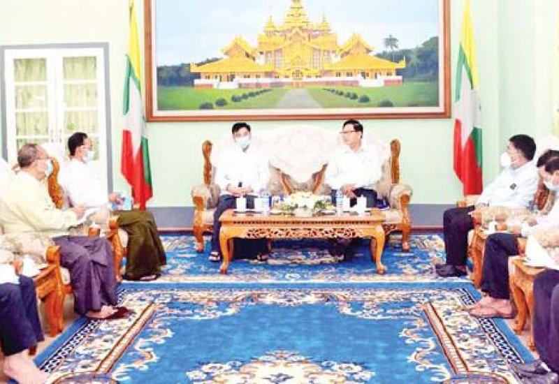 စီးပွားရေးနှင့် ကူးသန်းရောင်းဝယ်ရေးဝန်ကြီးဌာန ပြည်ထောင်စုဝန်ကြီး ဒေါက်တာပွင့်ဆန်းသည် ယနေ့နံနက် ၉ နာရီခွဲကကျောက်ဖြူအထူးစီးပွားရေး ဇုန်စီမံခန့်ခွဲမှုကော်မတီဥက္ကဋ္ဌ ဦးမြင့်သိန်းနှင့်အဖွဲ့ကို စီးပွားရေးနှင့် ကူးသန်း ရောင်းဝယ်ရေးဝန်ကြီး ဌာန ဝန်ကြီးရုံး အစည်းအဝေးခန်းမ၌ လက်ခံတွေ့ဆုံသည်။