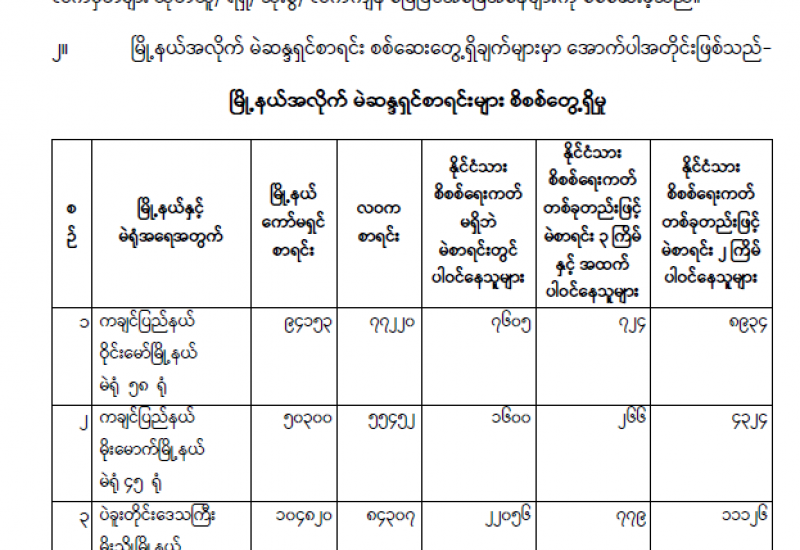 ယနေ့နံနက်(၀၉:၃၀)နာရီအချိန်ထိမိုးလေဝသတိုင်းထွာချက်အကျဉ်းချုပ်။လွန်ခဲ့သော(၂၄)နာရီအတွင်းက ရှမ်းပြည်နယ်(မြောက်ပိုင်း)တွင်နေရာအနှံ့အပြား၊ စစ်ကိုင်းတိုင်းဒေသကြီးအထက်ပိုင်း၊ တနင်္သာရီတိုင်းဒေသကြီး၊ ချင်းပြည်နယ်နှင့် မွန်ပြည်နယ်တို့တွင် နေရာစိပ်စိပ်၊ စစ်ကိုင်းတိုင်းဒေသကြီးအောက်ပိုင်း၊ ကချင်ပြည်နယ်၊ ရှမ်းပြည်နယ်(တောင်ပိုင်းနှင့် အရှေ့ပိုင်း)နှင့် ရခိုင်ပြည်နယ်တို့တွင် နေရာကျဲကျဲနှင့်မန္တလေးတိုင်းဒေသကြီးနှင့် ကရင်ပြည်နယ်တို့တွင် နေရာကွက်ကျား မိုးထစ်ချုန်းရွာခဲ့ပြီး၊ ကျန်တိုင်းဒေသကြီးနှင့် ပြည်နယ်တို့တွင် တိမ်အသင့် အတင့် ဖြစ်ထွန်းခဲ့ပါသည်။ မှတ်သားဖွယ်ရာ မိုးရေချိန်များမှာ ကျောက်တော်မြို့တွင် (၂.၀၅)လက်မ၊ ချောင်းဆုံမြို့တွင် (၁.၃၈)လက်မ၊ ပူတာအိုမြို့တွင် (၁.၂၂)လက်မ၊ မြစ်ဆုံမြို့တွင် (၀.၉၄)လက်မ၊ မိုးမိတ်မြို့၊ မင်းကင်းမြို့၊ ကော့ကရိတ်မြို့နှင့် ကျိုက္ခမီမြို့တို့တွင် (၀.၆၃) လက်မစီနှင့် သီပေါမြို့တွင် (၀.၅၄)လက်မတို့ ဖြစ်ကြပါသည်။